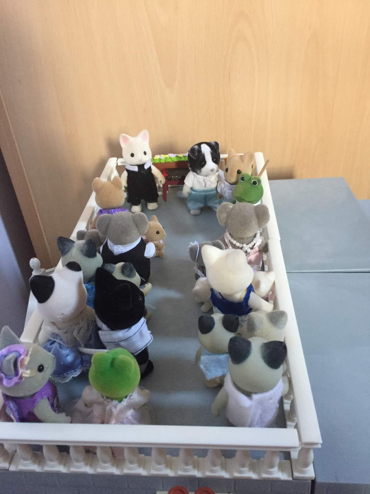 For the wedding, a few little notes: Foxbridge isn't a religious place so the values Kirk promotes are traditionally Sylvanian- love, kindness and wisdom, as well as helping others, being a good friend, etc. Marriage is legal between two critters of any gender, sexuality or identity, and love is very important! Kirk's role as mentor is to help everyone make good choices and be a helpful figure in the community. His outfit is slightly different to that of a priest/vicar, and is an official uniform- he tends to wear his cosy old trousers and jumper when he's at home. The book he holds is the Foxbridge Record, which records marriages and important events such as births. (It is a DollsHouseShop bible, hence the cross, but our smartest miniature book!)